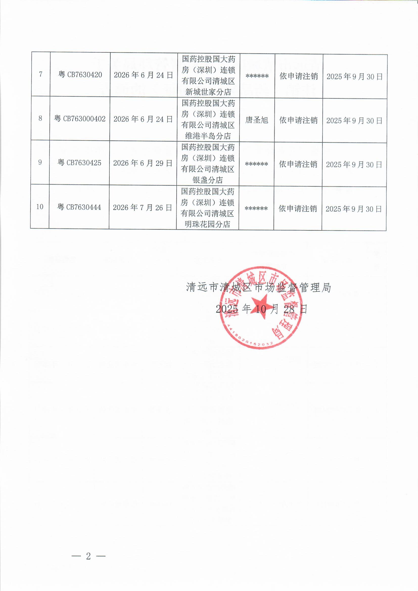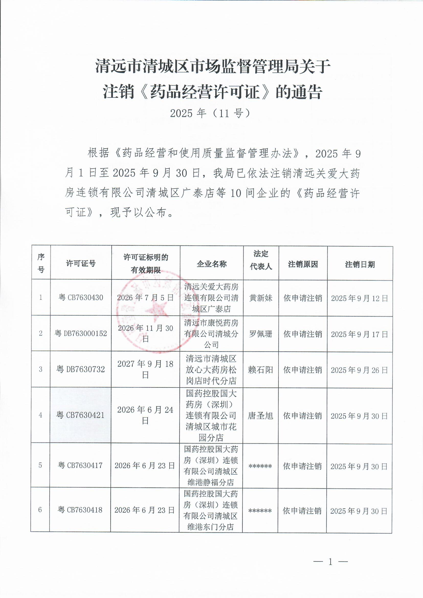 清远市清城区市场监督管理局关于注销《药品经营许可证》的通告(2025年(11号))