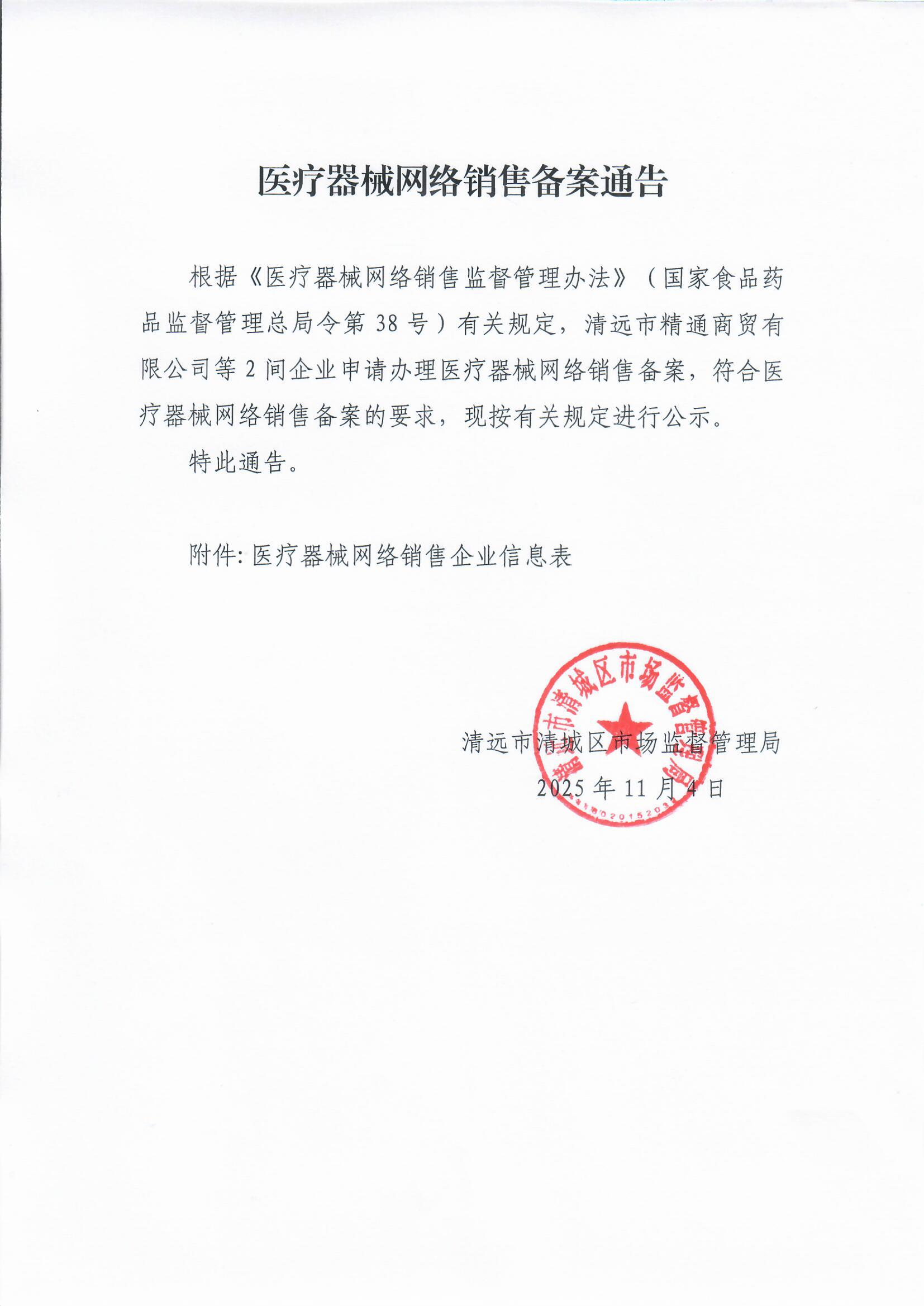 (清城)网械销售备字 ﹝2025﹞第39号