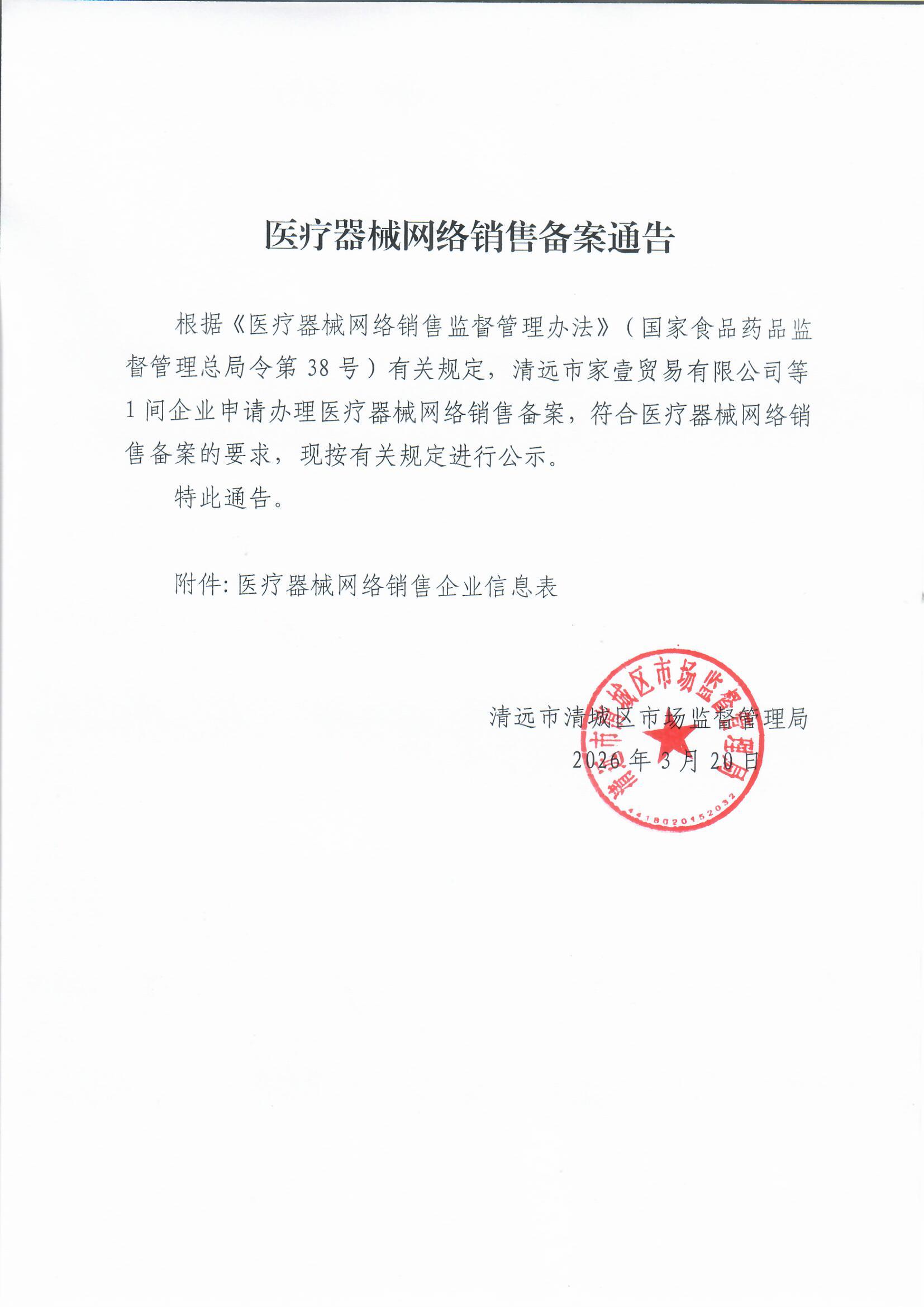 (清城)网械销售备字 ﹝2026﹞第5号