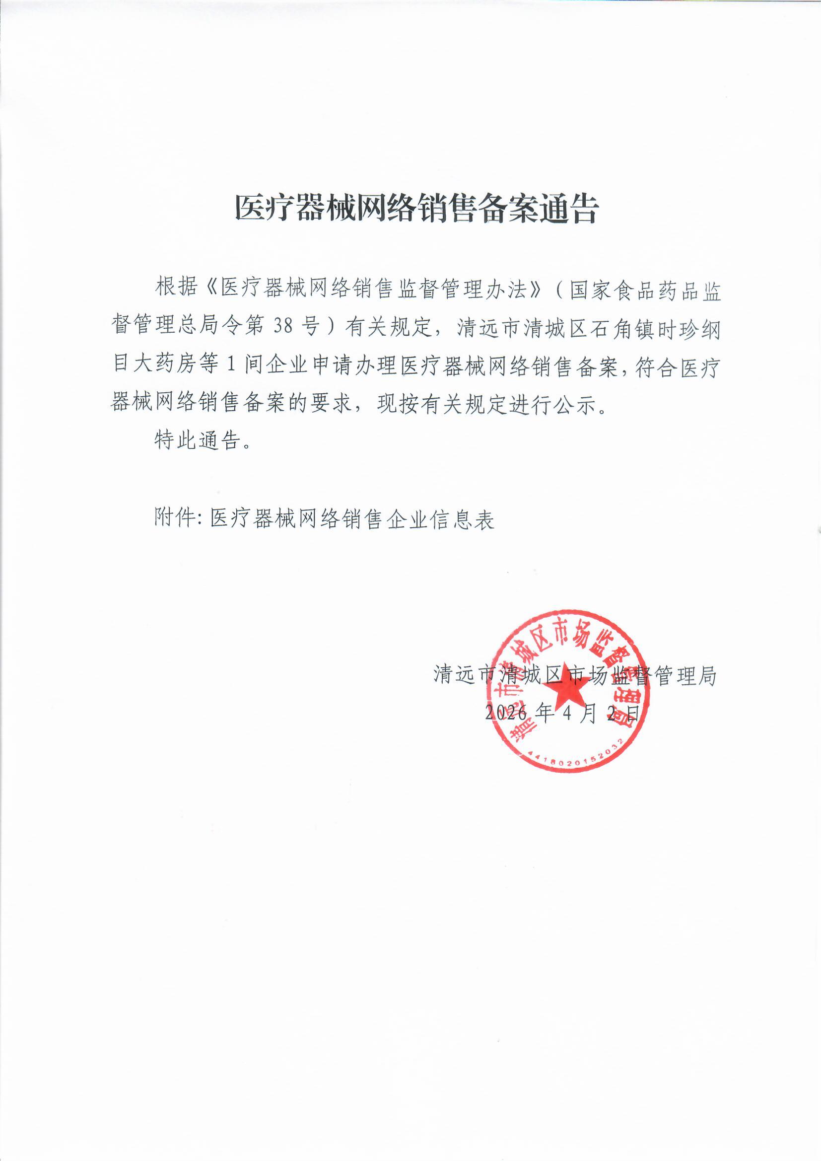 (清城)网械销售备字 ﹝2026﹞第6号