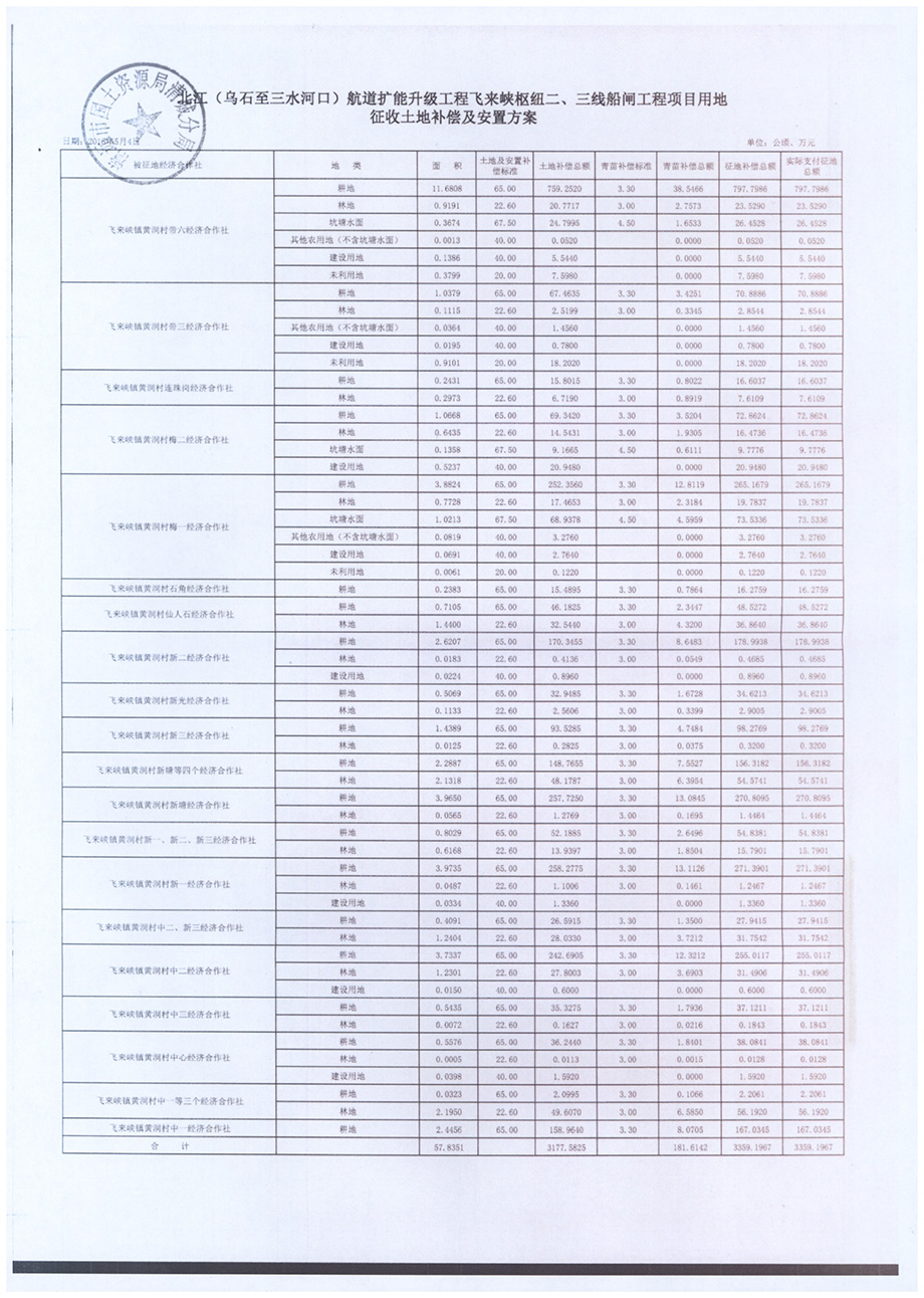 北江(乌石至三水河口)航道扩能升级工程飞来峡枢纽二、三线船闸工程项目征地补偿安置方案