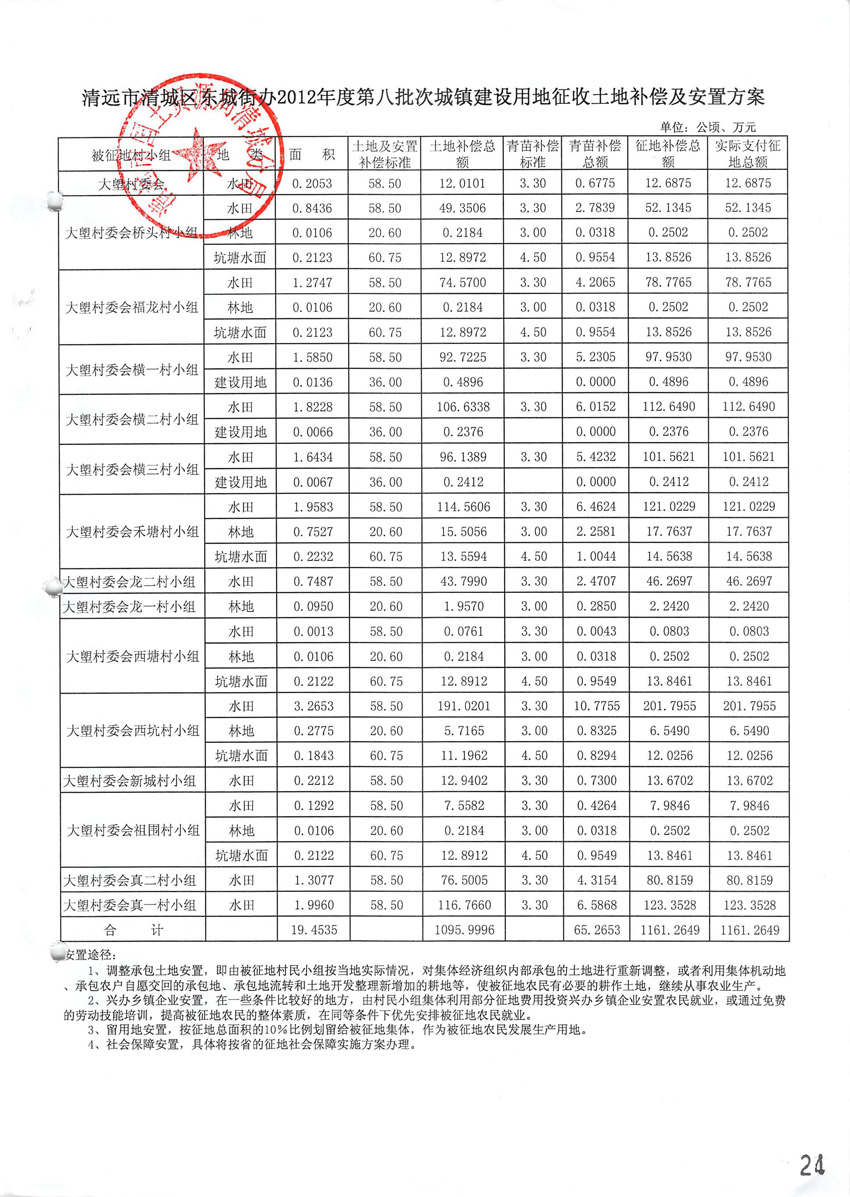 东城街办2012年第八批次征地补偿安置方案