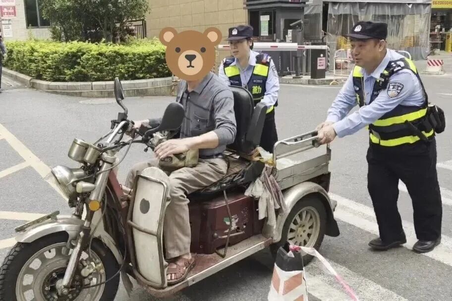近日,分局警务保障室巡逻警力在日常勤务巡查途中,行至峡山东路路口时,发现一位残疾老人驾驶的电动三轮车突发故障抛锚,停在路口进退两难。