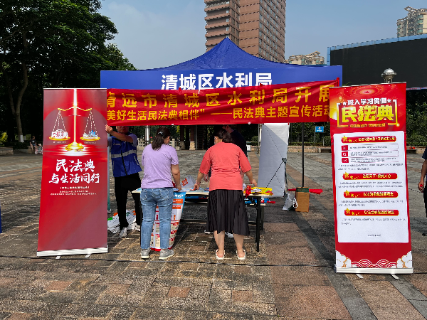 为进一步普及民法典知识,提升广大群众法治素养,2023年5月15日,清城区水利局到凤城广场开展“美好生活 民法典相伴”——民法典主题宣传活动。