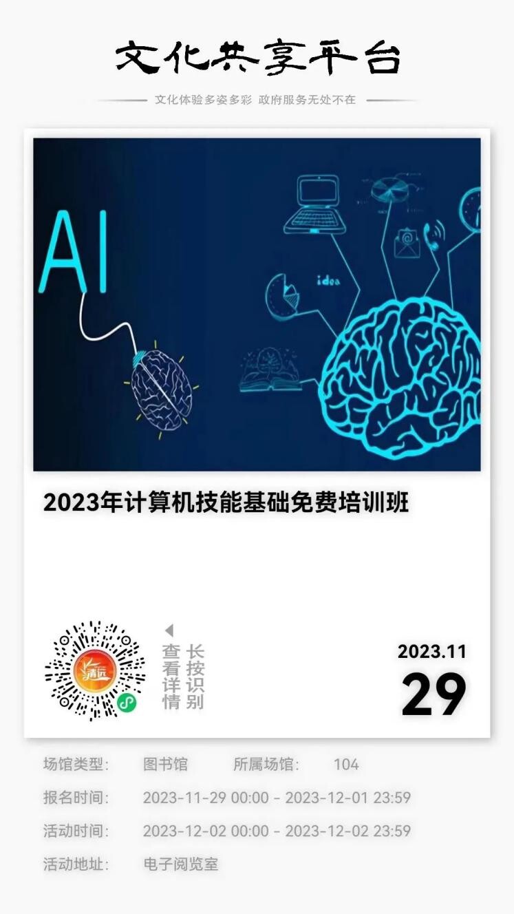 名称: 2023年清城区图书馆计算机技能基础免费培训班