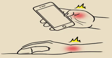简单来说,就比如我们长时间玩手机,手腕部的肌腱与腱鞘不断产生磨擦、劳损、压力增加,使肌腱和腱鞘出现水肿、有渗出液、充血等无菌性的炎症症状,就是我们所说的“手机手”。