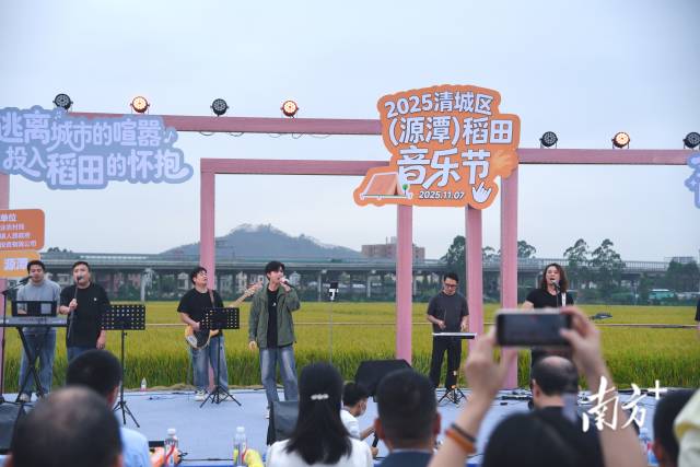 11月7日,2025清城区(源潭)稻田音乐节在源潭镇大连村举行。来自80后大叔乐队带来《海阔天空》《千千阙歌》等粤语金曲,广东交通职业技术学院新声合唱团带来《不要慌太阳下山有月光》《去有风的地方》等歌曲,来自源潭镇政府的职工也热情献唱,现场还有魔术表演、汉服走秀等精彩节目,让村民看了大呼过瘾。