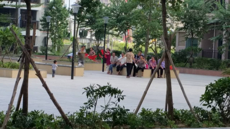 清城区和平小区住户休闲地在广场活动