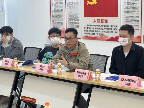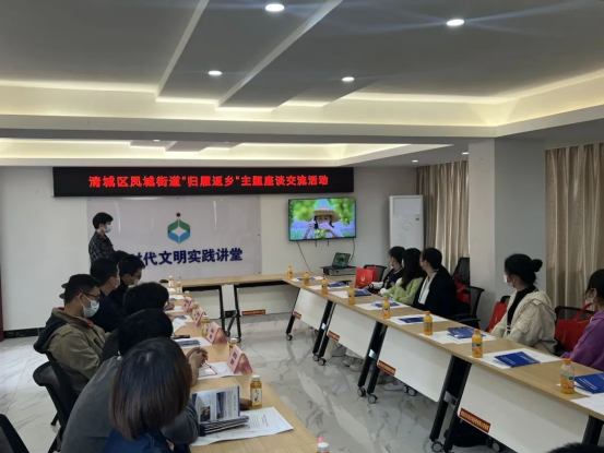 在朝阳社区新时代文明实践讲堂,活动设置了“归雁返乡”主题交流座谈环节,邀请朝阳社区书记谢钰涛、凤城街道朝阳里历史文化旅游街区招商中心经理卢伟明、清城区人社局宣讲员林伟杰等参与本次座谈。