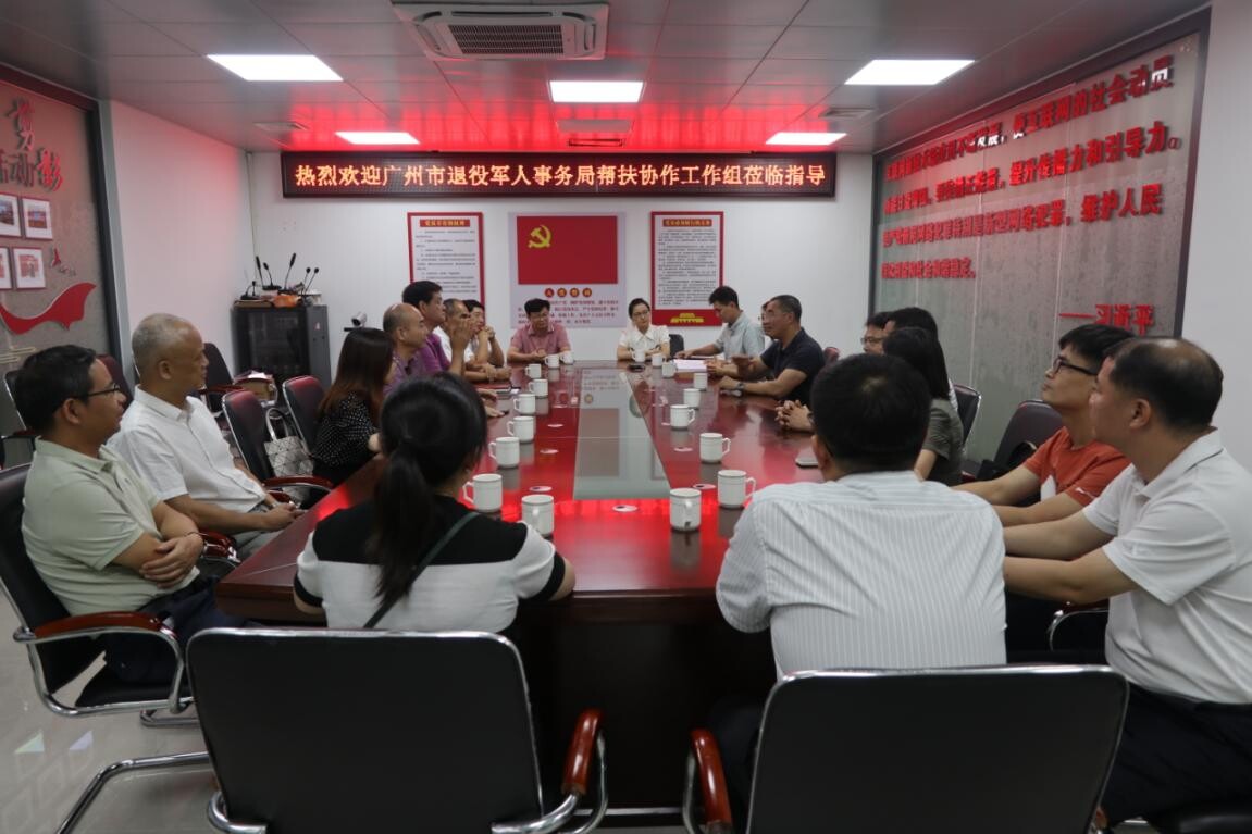 7月10日,广州市退役军人服务中心主任陈淡歆率各区退役军人服务中心负责人组成调研组,到清远市调研交流,对接广州—清远退役军人服务新型帮扶协作工作。