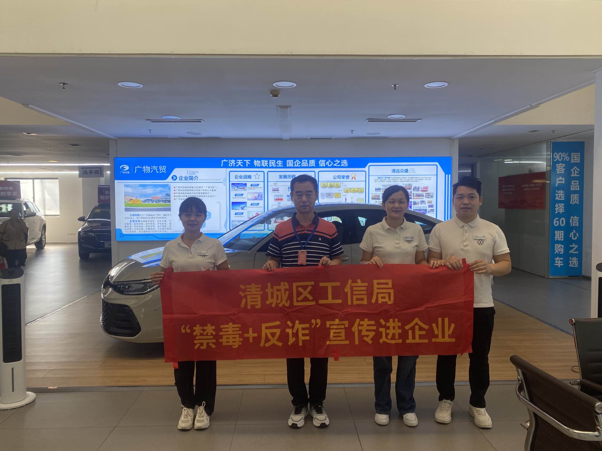 清城区工信局严格落实禁毒和反诈相关文件精神,2024年10月,区工信局到清远市广物众盛汽车销售服务有限公司、清远南方骏凯汽车销售服务有限公司等企业开展了禁毒和反诈宣传,要求企业加强全体员工禁毒和反诈知识宣传教育。