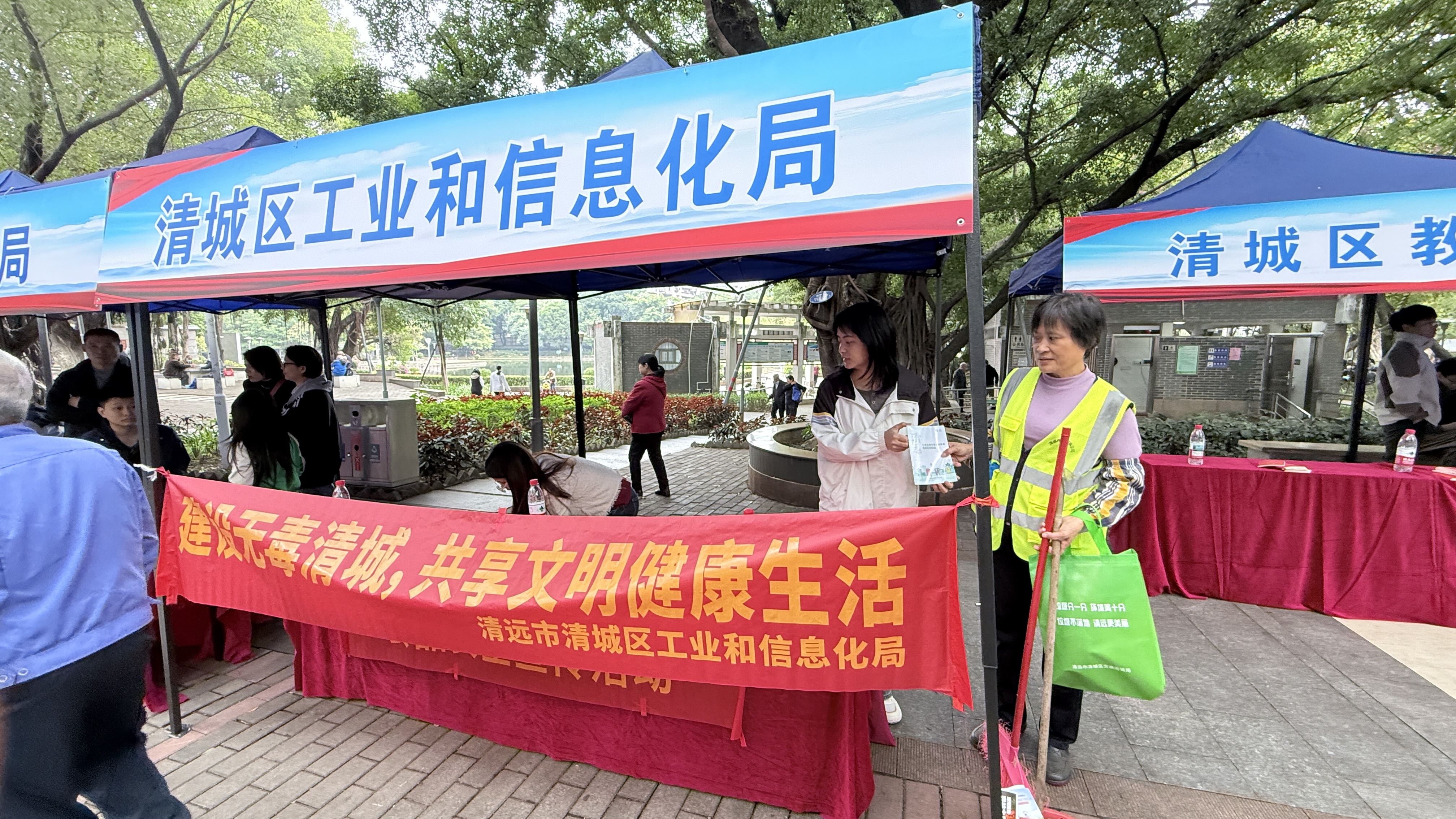 为深入贯彻落实习近平总书记关于禁毒工作的重要指示批示精神,区工业和信息化局以“健康人生 绿色无毒”为主题,精心组织并深入开展群众性禁毒宣传教育活动,于2025年12月4日到凤城街道中山公园开展禁毒宣传工作“进社区”活动,通过派发宣传单、现场讲解等方式,进一步扎实做好全民禁毒工作,持续宣传,加大禁毒宣传教育力度,提高群众远离毒品、拒绝毒品的意识,形成共同抵制毒品的良好氛围,进一步提升群众对禁毒的知晓率、参与度,免受毒品侵害的自我保护意识。