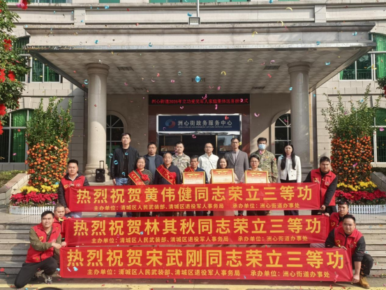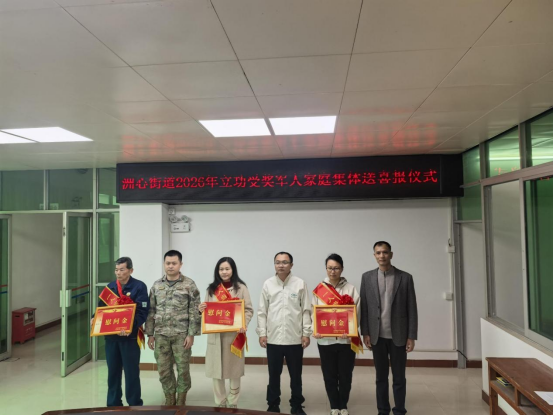 三月春风暖,喜报传佳音。在第62个学雷锋纪念日到来之际,为进一步弘扬拥军优属、拥政爱民的光荣传统,3月5日,清城区退役军人事务局联合区人民武装部及洲心街道办事处为林其秋、宋武刚和黄伟健三位荣立三等功的现役军人家庭举行“洲心街道2026年立功受奖军人家庭集体送喜报仪式”,为现役军人家庭送上立功喜报和慰问金,以实际行动诠释“军民一家亲”的深厚情谊,让军人军属切实感受到党和政府的关怀与尊崇。