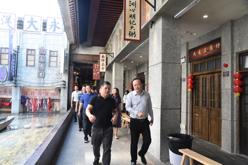 在倾国清城文旅综合体,邱泽军一行察看了“旧清远”建筑后表示,该建筑要充分挖掘清城特色、体现清城文化,引入清城传统美食,让游客在游览“旧建筑”的同时了解清城历史,传承清城传统文化;同时美化周边城中村的外立面,连片打造具有清城特色的建筑,让其达到视觉上的统一。