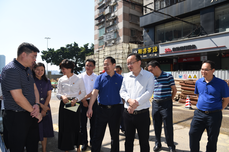 在南门街口牌坊改造工程施工现场,邱泽军表示,南门街一带是清远的发源地,历史文化底蕴厚重,改造时要结合清远的文化,打造清远文化特色样板街,同时临街建筑的外立面也要结合历史文化进行美化建设。