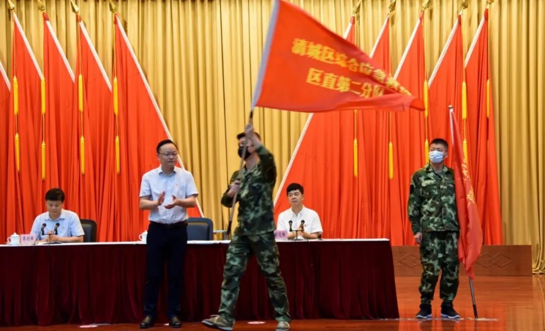 区委书记、区长邱泽军向清城区综合应急救援队伍授旗,全区10支综合应急救援分队正式成立,标志着清城区应急救援工作迈上了一个新台阶。今后,综合应急救援队将承担起清城区综合应急救援的重任。区委常委、组织部部长刘达维宣读了《关于组建清城区综合应急救援队伍的通知》。