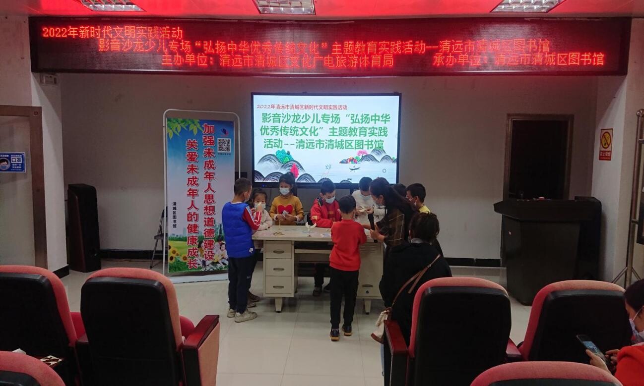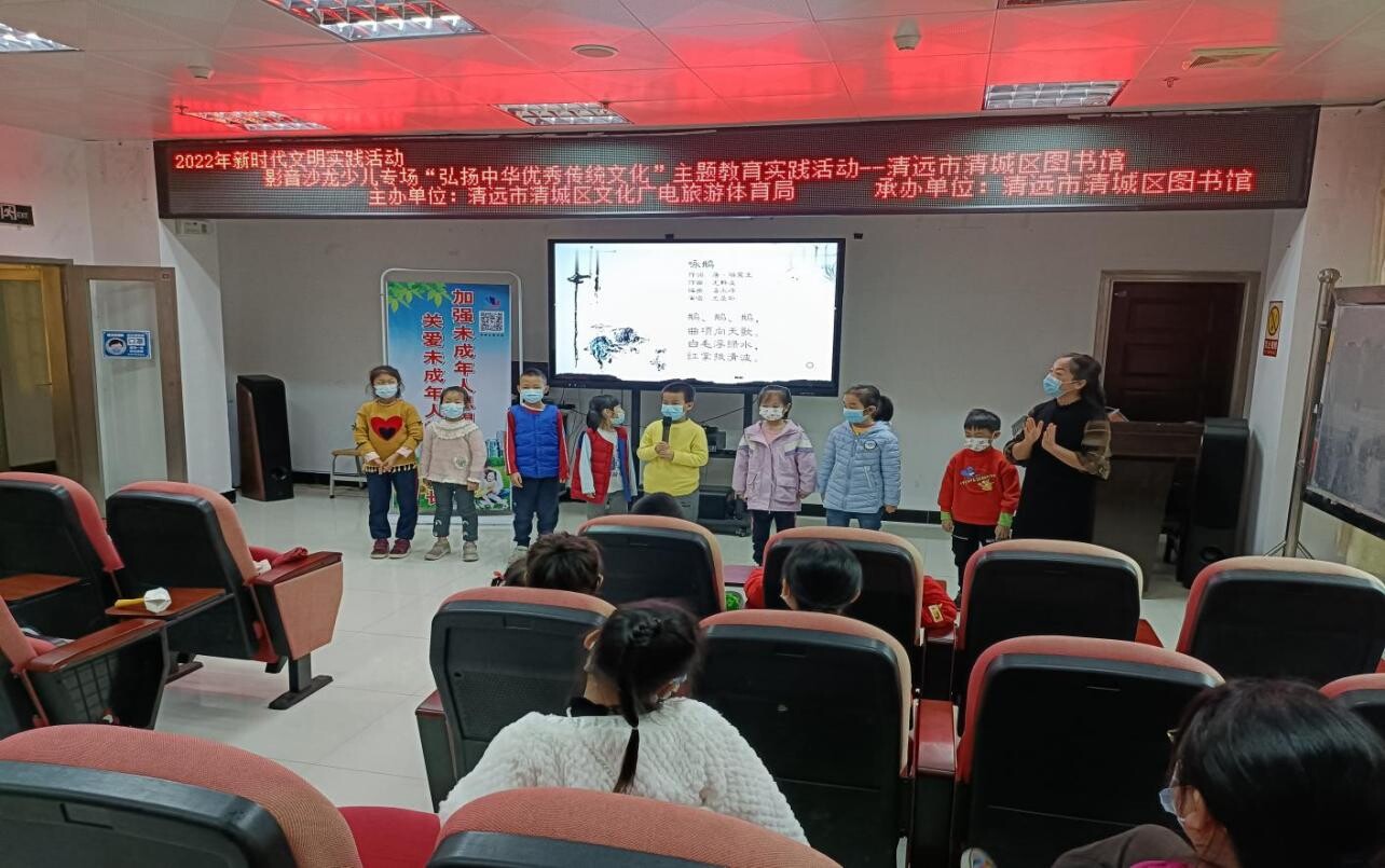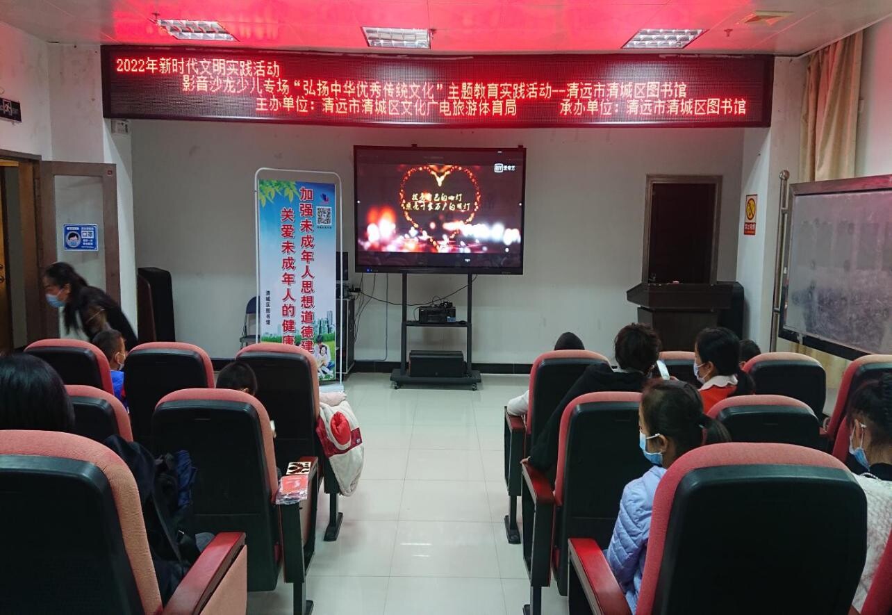 为弘扬中华优秀传统文化,坚定文化自信,2022年1月22日下午,清城区图书馆在一楼多媒体讲座厅举办影音沙龙少儿专场“弘扬中华优秀传统文化”主题教育实践活动。