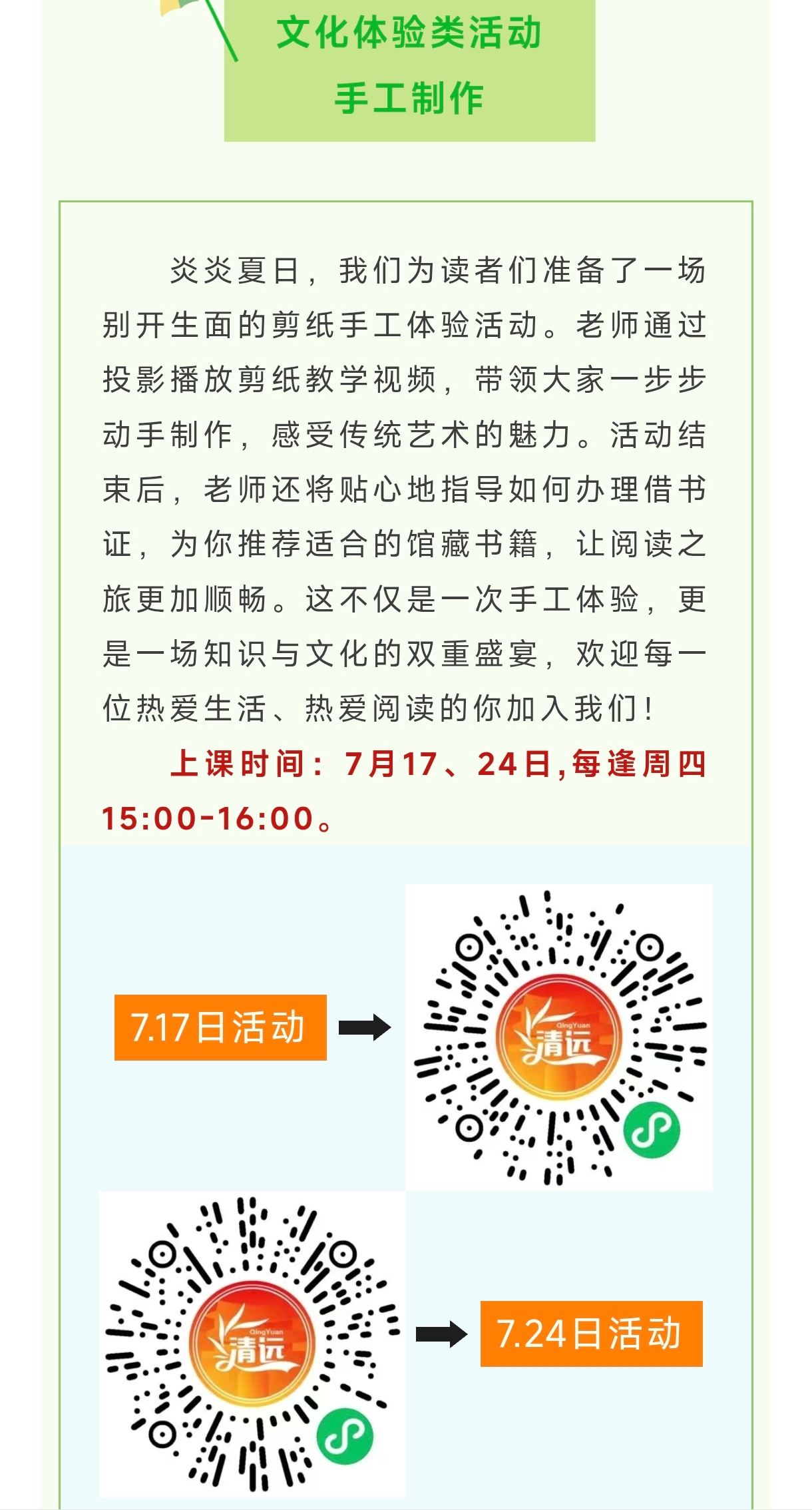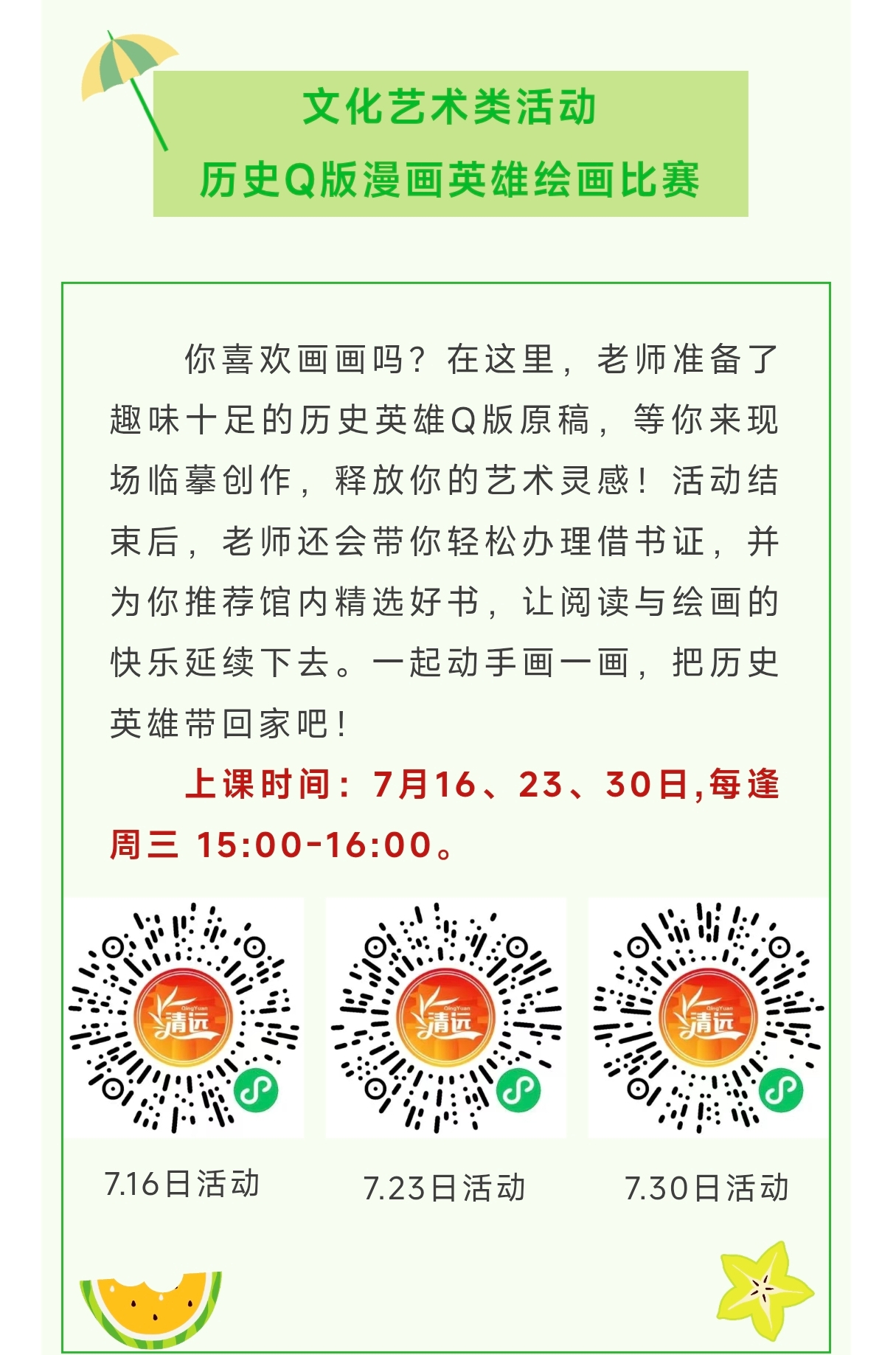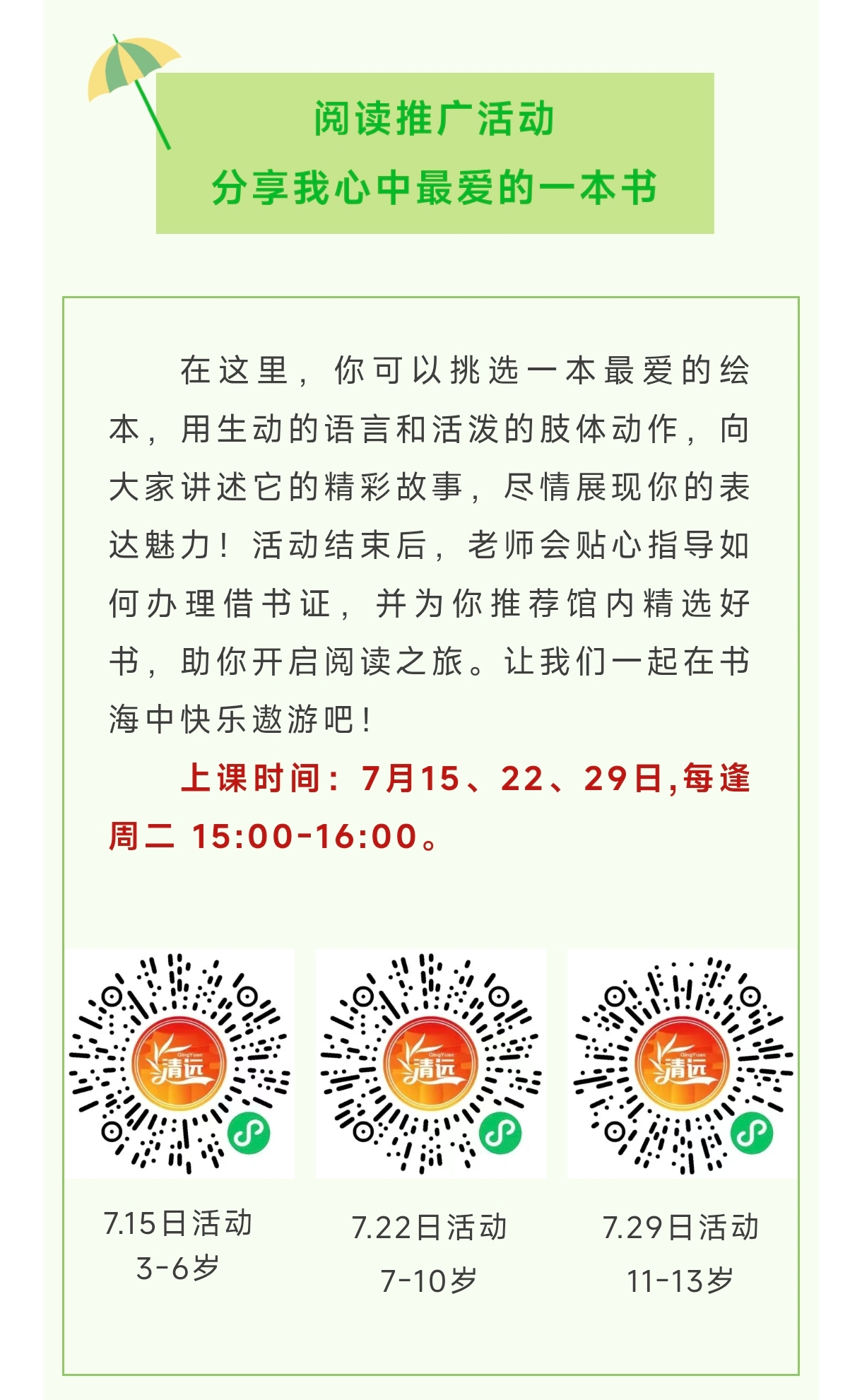 【活动报名】2025年清远市清城区图书馆七月下旬暑假系列活动