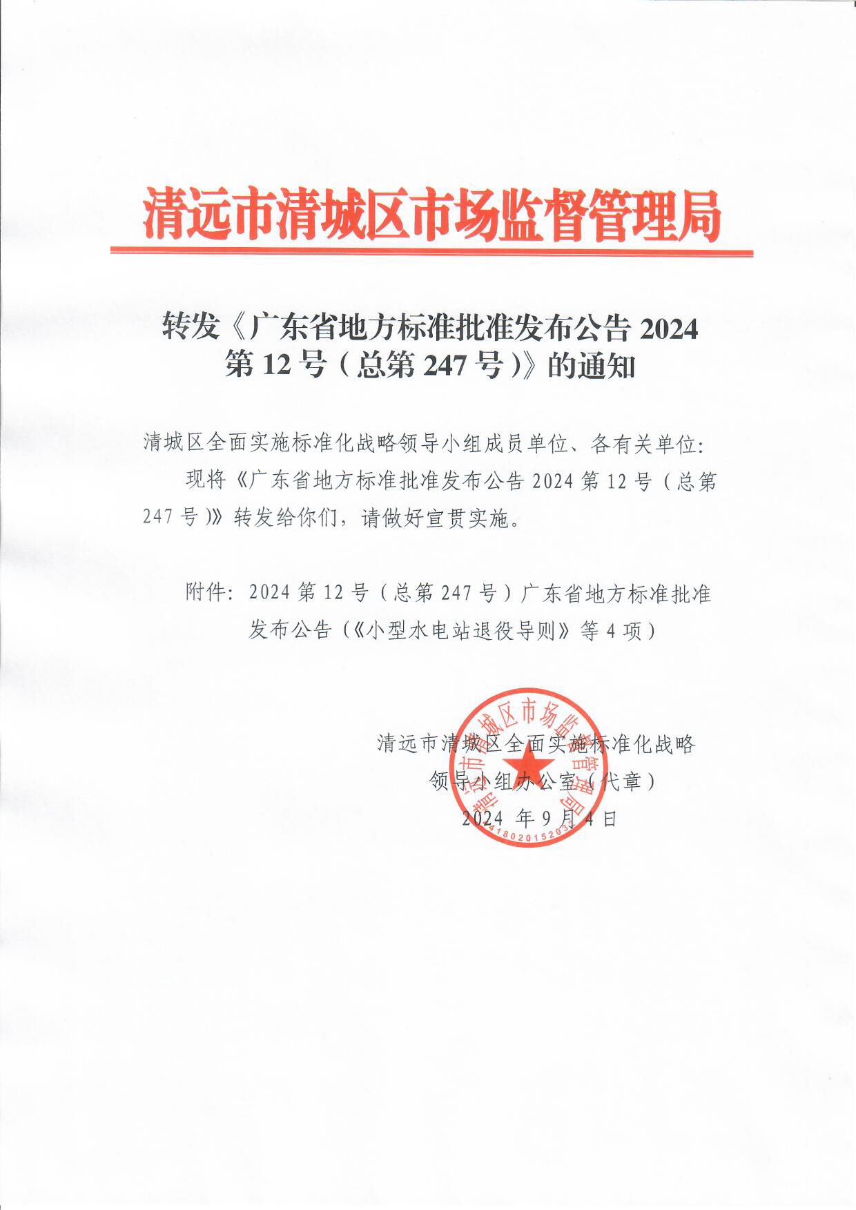转发《广东省地方标准批准发布公告2024第12号(总第247号)》的通知