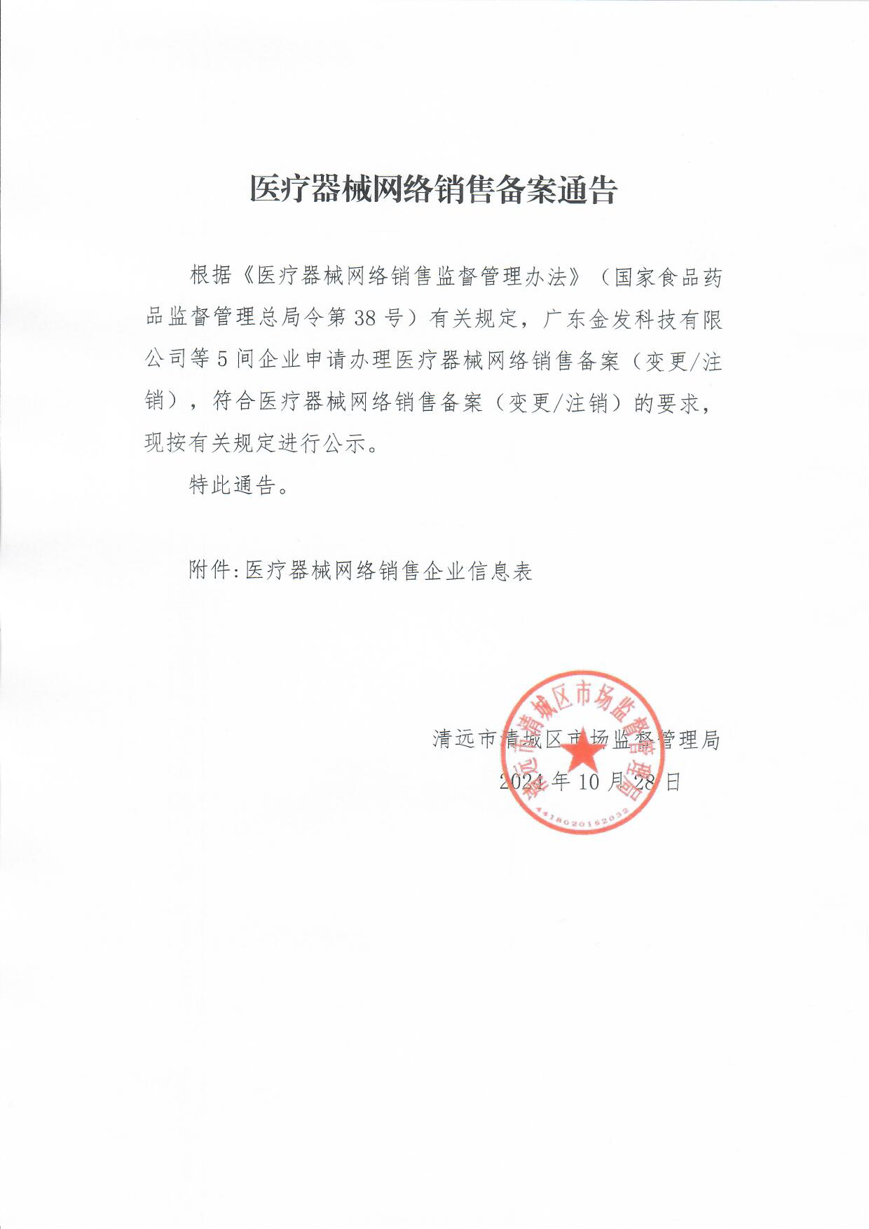 1 | 变更备案 | (清城)网械销售备字 ﹝2024﹞第183号 | 2024/10/18 | 广东金发科技有限公司 | 入驻类 | 91441802077867032A | 清远市清城区石角镇德龙大道28号 | 清远市清城区石角镇德龙大道28号金发科技高分子材料产品基地A25一楼 | 微店;京东商城;天猫;有赞网;锐竞采购平台;广州唯品会电子商务有限公司 | (京)网械平台备字(2019)第00008号;(京)网械平台备字(2018)第00003号;(浙)网械平台备字[2018]第00002号;(浙)网械平台备字[2018]第00003号;(粤)网械平台备字[2019]第00006号;(粤)网械平台备字[2019]第00001号; | ****** | ****** | ****** | ****** | ****** | ****** |
